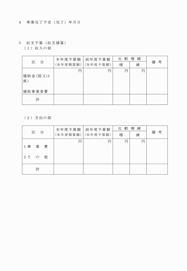 (4) 別表に掲げる事業ごとに配分された事業費又は補助対象経費の20パーセントを超える減少の場合(村が変更を要しないと認める場合を除く。)