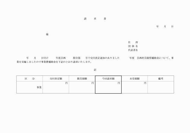 第8条 芸西村芸術祭実行委員会は、補助事業が完了したときは、補助事業実績報告書(別記様式第3号)を、出納閉鎖までに村長に報告しなければならない。